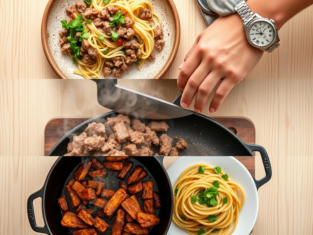 The "Flow" dictates that your pasta water should reach a rolling boil exactly as your beef finishes its primary browning phase. This allows you to transfer the pasta directly from the pot to the sauce, preserving that precious, cloudy pasta water. Never drain your pasta into the sink; you are literally pouring "liquid gold" down the drain. By timing the starch release with the fat emulsification, you reduce your total active time while maximizing the structural integrity of the dish.